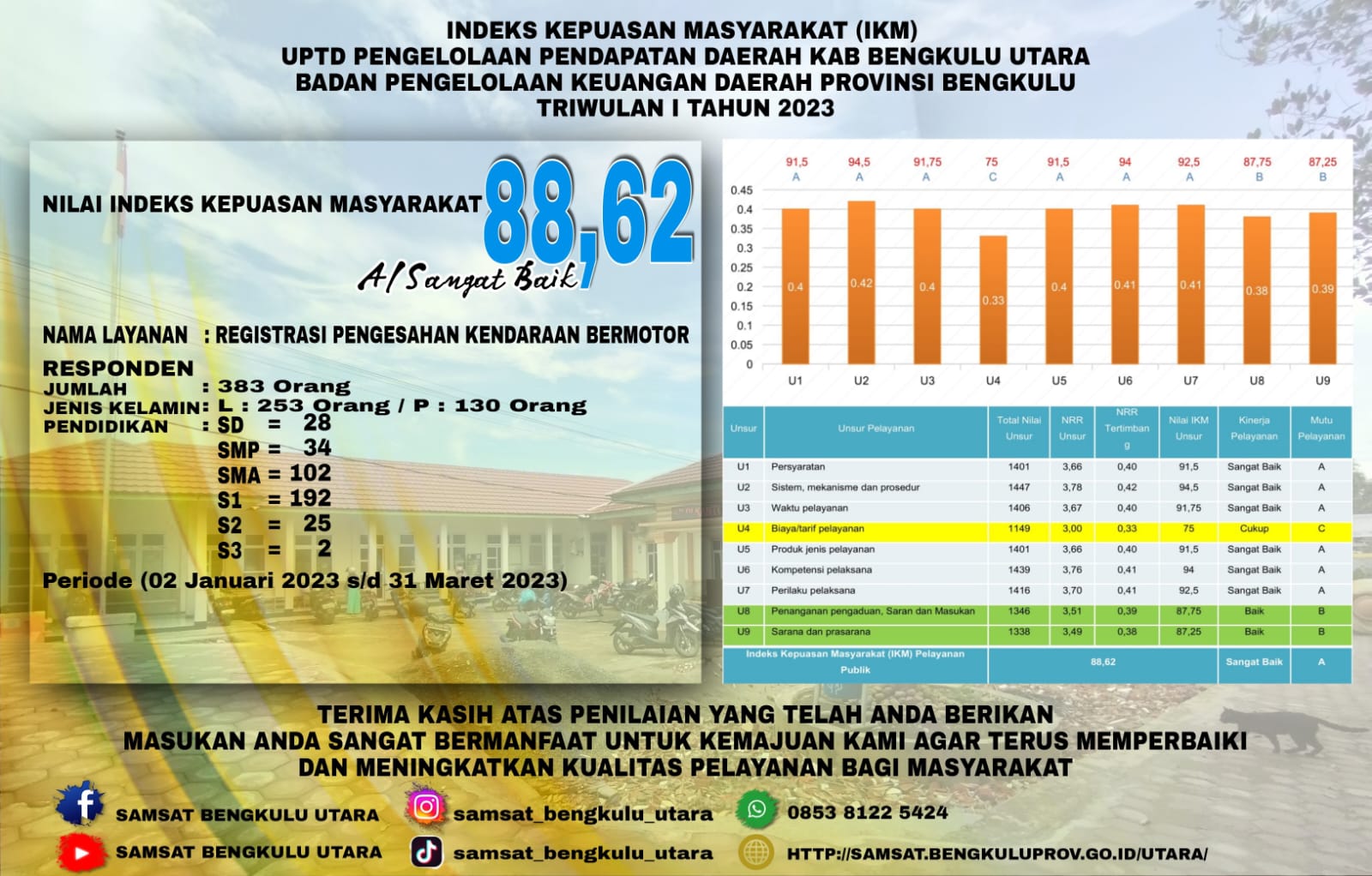 Survei Kepuasan Masyarakat Triwulan Pertama 2023 Atas Pelayanan Publik di Samsat Bengkulu Utara