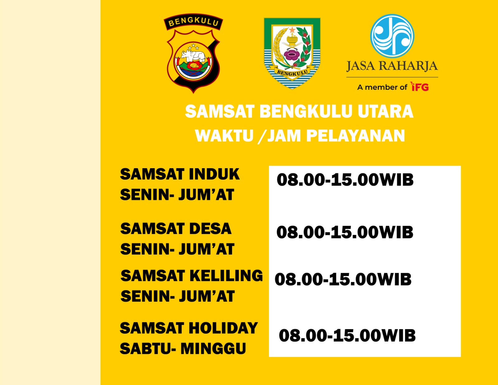 Jam Operasional Pelayanan Samsat Bengkulu Utara