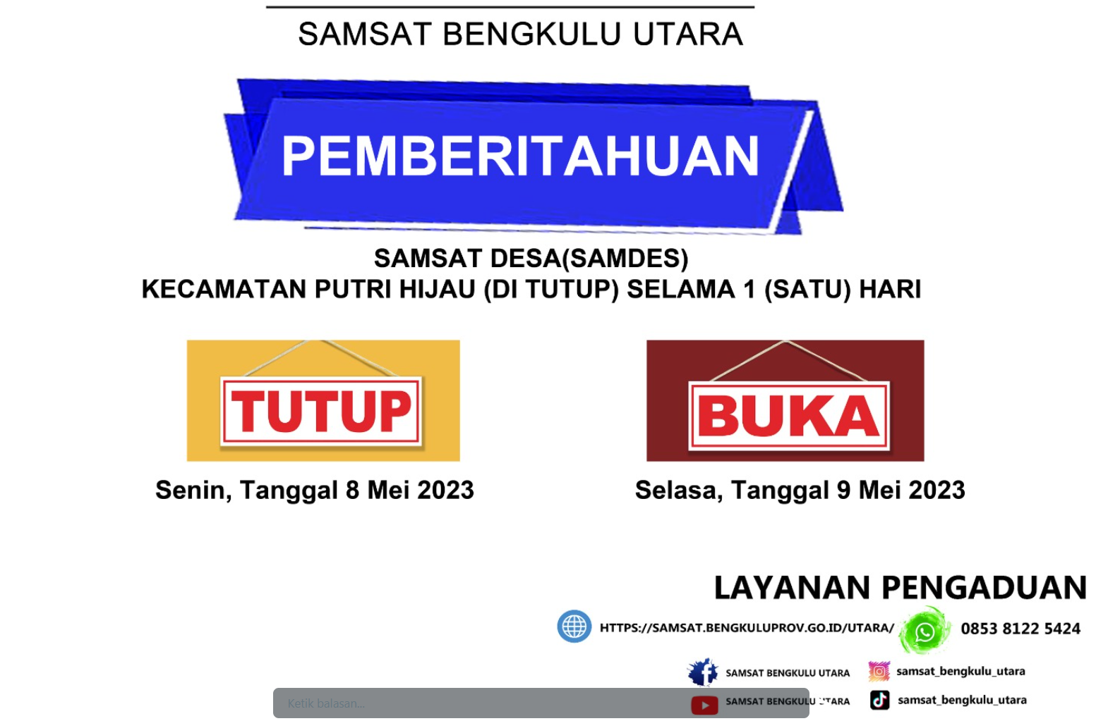 Pemberitahuan Tidak Ada Pelayanan Samsat Desa Putri Hijau pada Tanggal 8 Mei 2023